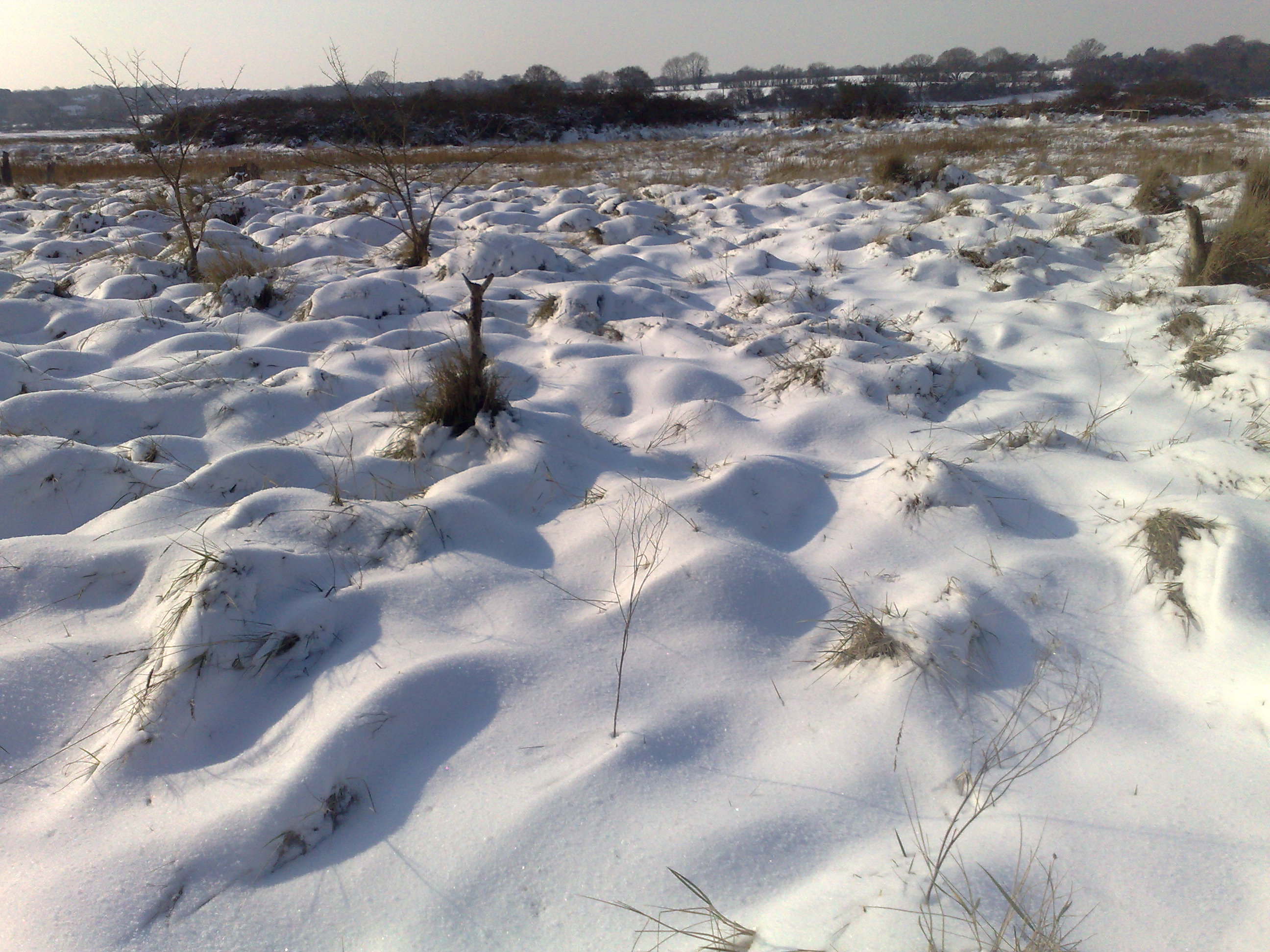 Birdsong seems louder against the white backdrop, only marked by a brush of grass